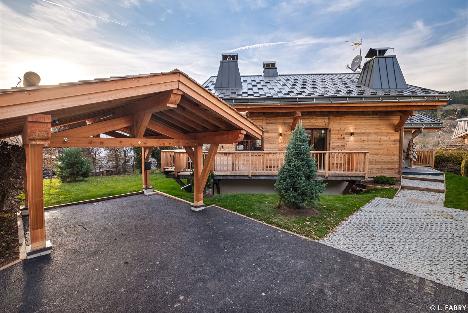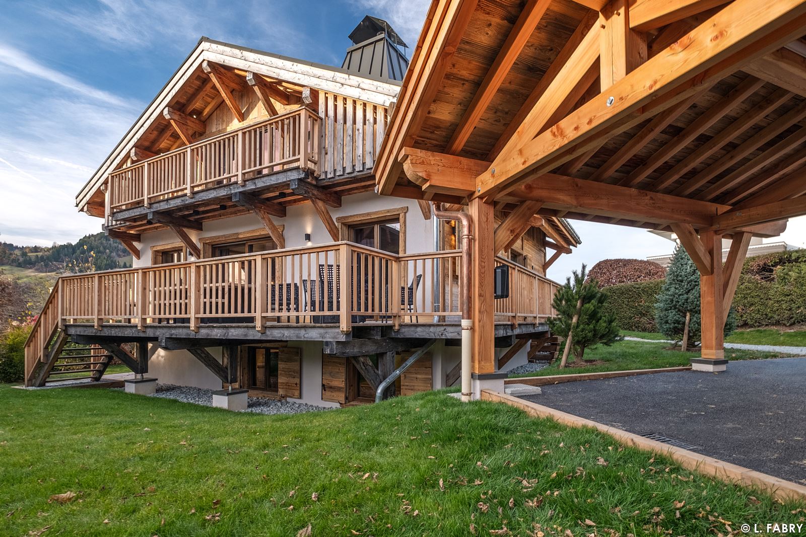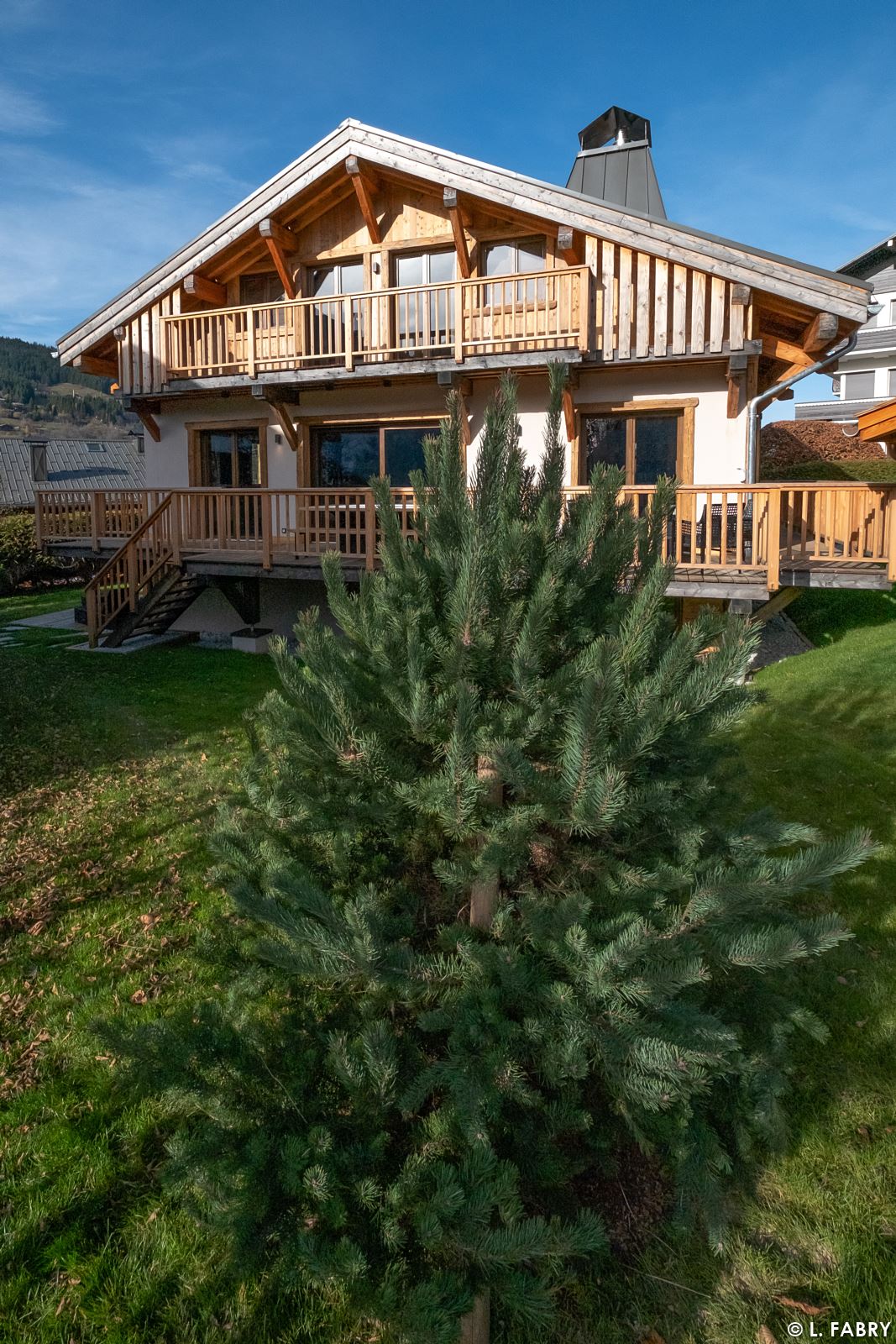 La programmation de ce reportage immobilier a pris beaucoup de temps : plusieurs mois, en raison de différents reports. Je ne sais pas exactement pourquoi, mais je suppose que certains corps de métier avaient des finitions à terminer ou des contre-temps. Je me suis même parfois demandé si on parviendrait à le photographier un jour ! Toujours est-il que lors de ma venue, les lieux étaient fins prêts pour de belles photos immobilières. Même le jardin et son gazon étaient de toute beauté. J’ai d’ailleurs eu la chance de profiter de belles couleurs d’automne pour magnifier ce beau chalet mégevan.