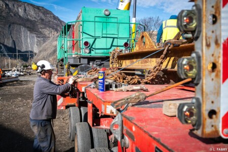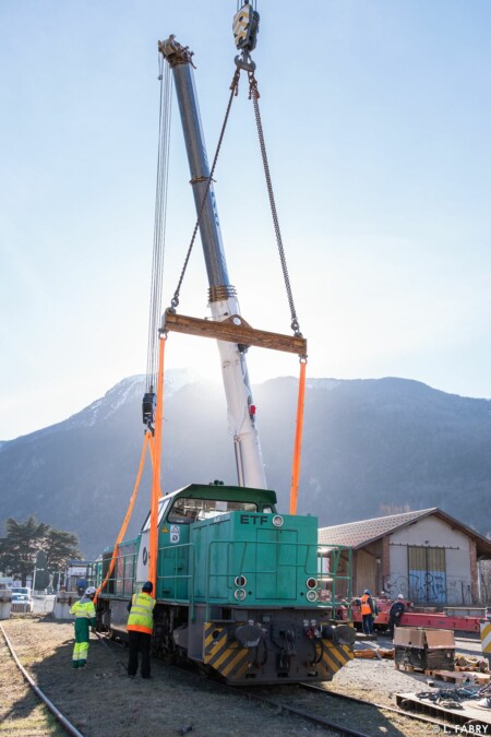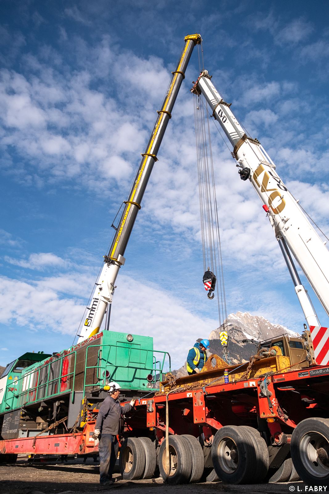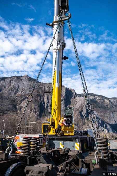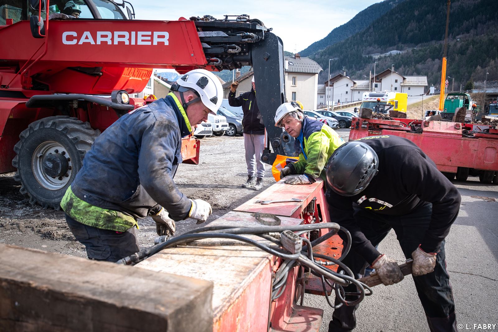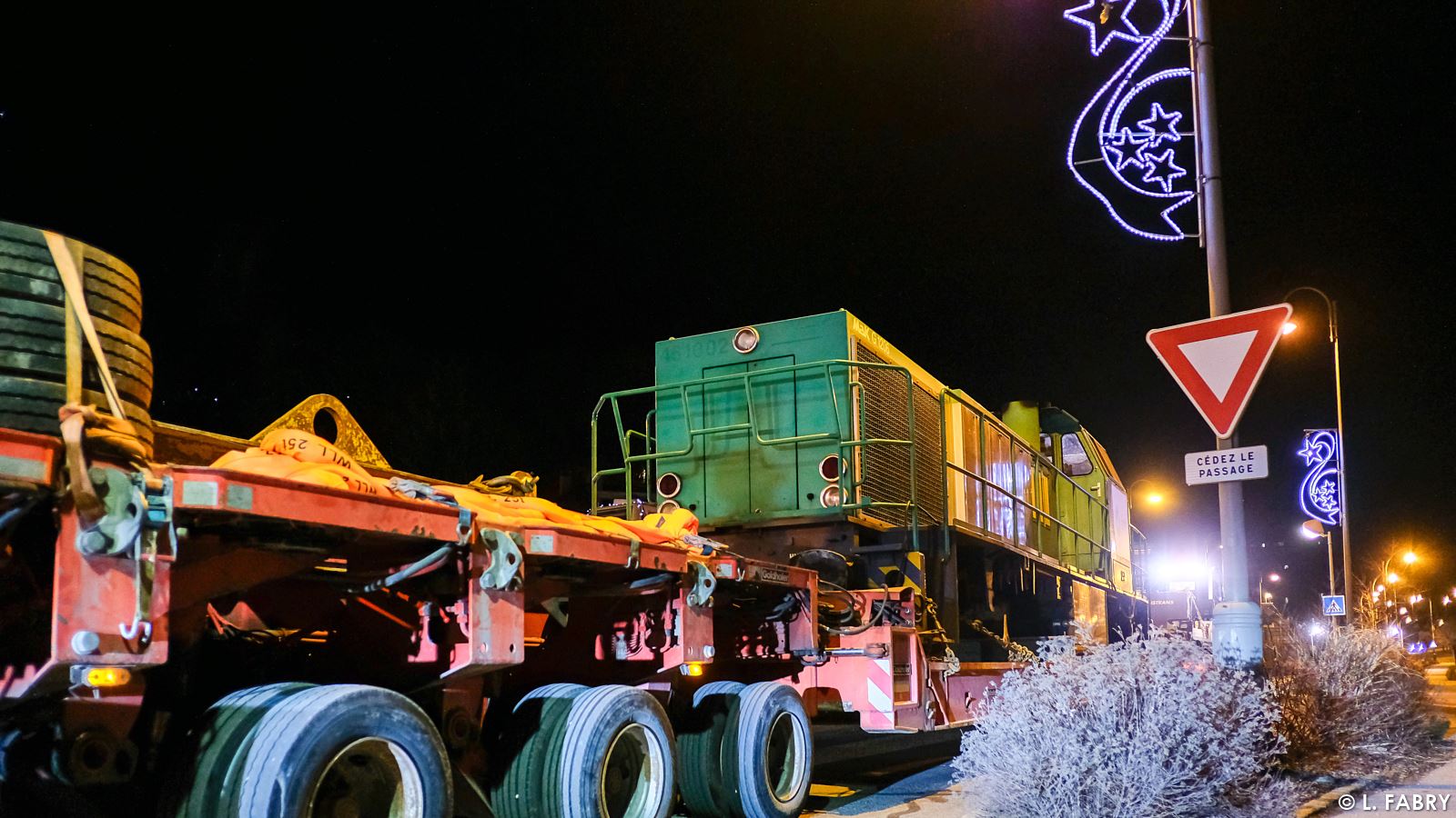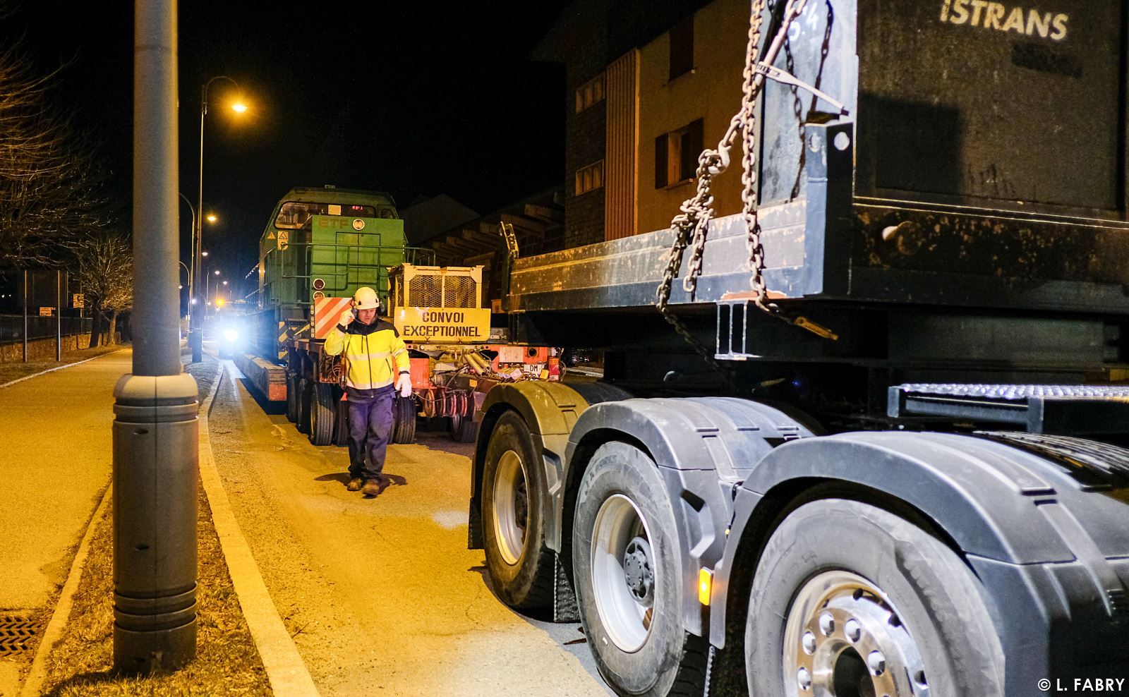 Le but de toute cette opération était de convoyer une locomotive de train de marchandise et plusieurs wagons par la route. Ceci en raison de la coupure de la liaison ferroviaire provoquée par l’éboulement de la falaise de la Praz en 2023. En Savoie, le projet pharaonique du Lyon – Turin a pour enjeu principal le report modal, qui consiste à mettre les camions sur le rail pour traverser les Alpes. Cette fois, ironiquement, nous faisions tout l’inverse, puisqu’un train a été déplacé par la route !